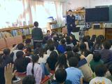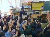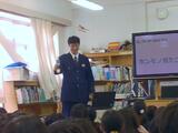 5時間目。3年生が図書室に集まりました。今日は、新座警察署の警務課からの出前授業で、警察官が来校されました。はじめは埼玉県の警察についてのDVDを視聴しました。社会で学習した警察の仕事以上に、様々な職の人たちが人々の安全安心のために仕事をしていることが紹介されていました。そのあとは、実際に警察官が使っている道具を紹介していただきました。手帳やベストなど、実物を見せていただき児童から様々な質問がだされました。また、新座市の事件事故の状況などをクイズで紹介してくださり、さいごに「ルールを守って生活する」というお願いをされて学習が終了。いろいろな質問にも時間いっぱい答えていただき、授業が終わった後にもお話しに行く児童が絶えなかった今日の出前授業でした。新座警察の皆さん、有り難うございました!