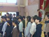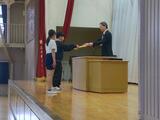 1時間目から、体育館で卒業証書授与式の予行がありました。6年生の入場では5年生がリコーダーの演奏を行います。式のリズムに合わせて6年生の入場のペースとしっかりあった演奏がすばらしいです。6年生の入場姿勢も背筋がしっかり伸びています。練習が始まったときには緊張でがちがちな歩き方の児童が多かったですが、胸を張って堂々と歩けるようになっています。校歌も、卒業生代表のことばも、卒業生の合唱も、心にジーンと響き、思わず目頭が熱くなりました。当日が楽しみになった5、6年生の様子でした。予行の後は6年生の児童表彰が行われました。体育的行事や何事にも一生懸命取り組むこと、学習や生活などの中での活躍など、様々な場面での表彰でした。おめでとうございました!