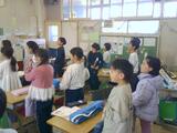 5時間目。6年生の3クラスでは、新座中学校の先生たちが来校され、出前授業が行われました。外国語、算数、理科の3教科を20分ずつ、1時間で2つの授業についての出前授業が行われました。何のアニメ(または他のもの)が一番好きなのかと質問し合う外国語の授業は、実は中学校2年生の学習内容だったり。数学では、はじめに思い描いた数字を、計算していく中で最後には先生があてるという学習内容の裏には仕掛けがあるのではないかと見破ろうとする児童がいたり。理科では新聞紙の下に入れた板のはみ出した部分を机の横に出し、木づちで思い切り叩くとどうなるのかを予想し、実験したり。児童と楽しく関わりながら、学習を進めていただきました。新座中学校の皆さん、有り難うございました!