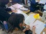 たんぽぽ学級は「6年生をおくる会」をしています。今年も優しくみんなをまとめてくれた6年生が卒業していきます。一緒の思い出に、外で、中で、一緒にレクをして楽しい時間を過ごしています。1-1は学級会です。最後のお楽しみ会の話合いをしています。「なんでもバスケット」「うんどうかいのダンス」「いっしょにしゃしんをとる」などなど、たくさんの意見が出されています。1-2と1-3は作品バックに絵を書いて、自分の作品をまとめています。「見て見て!」と、上手に書けた硬筆や絵を見せてくれる児童もいます。