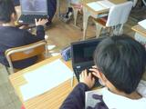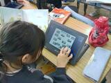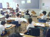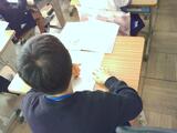 1時間目。1-1は「たぬきのいとぐるま」のなかで、自分の好きな場面をカードにまとめています。「たぬきじるにされてしまうで」と言いながらおばあさんがタヌキを逃がしてあげるところ」など、好きなところをその理由を付け加えながら書いています。1-2は動画を見ています。糸車という馴染みのないものが一体どんなものなのかを確認しています。一度見た動画ですが、お休みの人がいたため、もう一度確認しているようです。1-3は「てがみでしらせよう」という単元です。今日は学校生活の中で楽しかったことをノートに書き出しています。運動会のとき、生活科で幼稚園・保育園と交流会をしたとき、生活科見学で動物園に行ったとき、いろいろな思い出の中から自分のたのしかったことや嬉しかったことを見つけています。