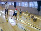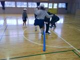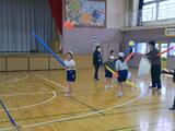 運動場にいるのは5-1です。取り組んでいるのは鬼ごっこのように見えます。カラーコーンが安全地帯で捕まらない場所。鬼はそれ以外の場所にいる人を捕まえるルールです。鍛えている力は、鬼に背を向けて全力で逃げる走力ではなく、鬼に仲間を捕まえさせないように状況を把握し、考えて仲間を呼び、自分が動く力です。体育館にいるのはたんぽぽ学級です。ウレタンの棒を跳び越したり風船を落とさないように打ち合ったり。キャラクターの箱をボールで倒したり。フラフープで様々な動きをしたり。最初に伝えられた動きだけでなく、道具を様々に使って新しい動きを考えて楽しんでいます。