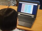 6-3は外国語です。小学校生活を振り返って思い出をみんなで共有しようと、"My best memory is the school trip."など、思い出とその内容についてを紹介しています。1年生は自由進度学習です。同じ入れ物を使って目盛りでどちらが多いかを比べたり、紹介したい働く車を選んでカードを作ったり。単元が後半に入り、カードに書かれている内容も充実してきています。たんぽぽ2組は算数です。今の自分に合った問題を配信してもらい、それぞれが取り組んでいます。