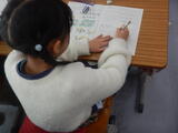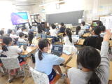 5時間目。2-2は算数です。面白い形に並んでいるアレイ図。「くふうして」計算すると、どのような計算になるでしょう?たくさんの考え方が生まれてきそうです。2-3は国語です。「おはなしのさくしゃになろう」という学習です。スイミーで学んだ物語の構成。その学習を活かして必要な要素を考えていきます。4-3はアンケートに答えています。CO2の削減に向けた取組についてです。新座市は、12月の第1日曜日(今年は12月7日)を「新座市エコライフデー」と定めています。毎年、自分の生活を振り返ってCO2の削減に向けての意識を高めています。