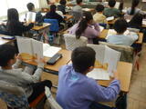 4-1は体育です。これから高跳びに向かいます。授業のはじめに自分の学習状況を確認しています。高さに合わせた場を選んで学習を進めます。3-3は国語です。「三年とうげ」の音読をしています。音読をしながら大まかな話のあらすじをとらえているところです。3-1は図工です。「これでかきたい」自分だけの筆を作っています。割りばしやアイスの棒、拾ってきた木の枝などを筆の軸に見立てて、毛糸や綿、モールなどで飾り付けをしながら作品作りを進めています。どんな自分だけの筆が出来上がるでしょうか?