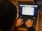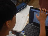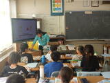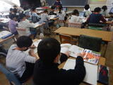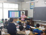5時間目。図書室にいるのは2-3です。これから読み聞かせが始まります。選んでくれたのは国語で読んでいる「お手紙」の作者、アーノルド・ローベルさんが書いた「ふたりは」シリーズのお話です。「お手紙」以外のお話にも関心を持ち、自分で読んだことがある児童もいるようです。4-3は社会です。自由進度学習で取り組んでいるのは野火止用水についてです。自分の課題に沿って、教科書から情報を収集しています。4-2は理科です。秋の生き物についての学習です。動画を視聴しながら、春から自分たちがどんな学習をしてきたのか、どんな生き物と出会ってきたのかを思い出しています。