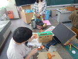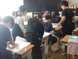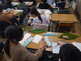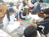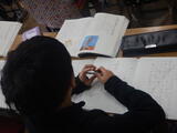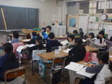 1時間目。6-2は図工です。クランクを使った作品作りを進めています。硬い針金に苦戦しながらも、曲げてクランクを作り、箱にセットしたりクランクにつなげて箱から出入りする部品をつけたりと、作品が形になり始めています。5-3は国語です。古典に親しもうと、浦島太郎の一節を古文で読んでいます。古文のまま黙読したり声に出して読んでみたり。物語的には知っているお話ですから、この文がどんな意味なのか想像をつけてまずは自分でまとめています。この後教科書の訳と比べたとき、自分の想像した訳はどうでしょうか?5-2は算数です。分数の約分の仕組みについて考えています。大きな数の分子と分母を同じ数で割ると小さな数の分数になることを確認すると、次は問題です。自分でどのように約分したのかを説明できるでしょうか。
