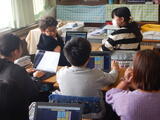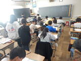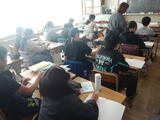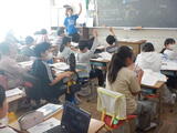 3年生は国語です。どのクラスも「すがたを変える大豆」を扱った単元の学習をしています。1組は本文から説明的な文章の書き方を読み取り、自分で調べた食べ物の姿を変える様子を説明文にしています。イメージマップから発想を広げ、さらに本で情報を調べてまとめています。2組は大豆が姿を変えた食品をどのような順序で紹介しているのかを考えています。大豆により近い姿から加工されて大豆だとわからなくなっている食品まで筆者がその順番で紹介したかった理由に迫っています。運動会が諦められず、鉢巻きをまいて学習している児童もいます。3組は筆者の説明の工夫を見つけています。はじめに工夫を書いていること。はじめ・なか・おわりの構成で書かれていること。写真を説明の近くに入れていることなど、自分たちが説明文を書く時に使えそうな工夫を発見し交流しています。