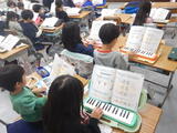 1-3は音楽です。ドレミファソの5音の中から選んで3つの音を続けて鳴らします。二人でつなげて演奏するためにどんな3音がお気に入りの音になるのかを演奏しながら探しています。5-2は国語です。「よりよい学校生活のために」という単元です。今の学校生活の状況から自分たちで課題を見つけ、そのことについて自分の意見を書いているところです。「定期的に体を動かす」「時間を守る」「25分休みの過ごし方」など議題としたいことを決めてどのようにすれば解決できるのかを意見にしてまとめています。