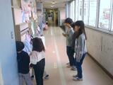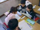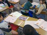 4-1は理科です。教室の窓ガラスに水滴がついています。教室に入ると、床も濡れています。霧吹きで水をまき、教室内の湿度を充満させています。器に水滴がつく時の条件を、条件の違う缶を観察しながら考えています。3-1は国語です。「お気に入りの場所、教えます」という単元です。お互いのお気に入りの場所を発表し合い、聞き取りながらお互いの発表について感想を記録しています。1-3も国語です。「ずうっと、ずっと、大すきだよ」を読んでいます。エルフが年をとって階段も登れなくなっている時の「ぼく」、寝る前に必ず「ずうっと、大すきだよ」と言っていた「ぼく」についてお互いの感想を交流しています。