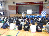 5・6時間目です。体育館では6年生の出前授業が行われています。本日は、新座市にある「サンケン電気」さんをお呼びして、半導体とはどのようなものかをお話いただきました。新座市の歴史とサンケン電気の関わりや半導体とは何か新座市教育委員会が作成した半導体テキストを活用しながら教えていただきました。半導体とは人でいう「筋肉」であり「頭脳」である。電化製品にとってなくてはならないもの。1つの電化製品に多くの半導体が使われており、1つでもないと動かなくなるものです。クイズを含めながらお話いただき、のびっ子たちも考えながらお話を聞きました。後半は、講師の先生が少年レスリングの指導もされていることから、キャリア教育として、ストレッチ等で体を動かしたり、お話を聞いたりしました。好きなこと是非続けてほしいと、エールをいただきました。