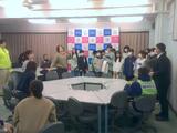 朝集まってくださった各ボランティアの代表の皆さんに、6年生がご挨拶。襷やプログラムを渡して会場にご案内します。