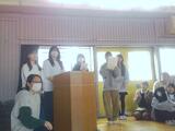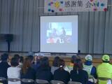 はじめは「動画チーム」による動画の上映です。それぞれのボランティアの皆さんの活動の様子と6年生からの感謝の言葉を曲と共に紹介します。見守りボランティアの皆さんには、それぞれの地区の6年生から感謝の言葉が伝えられました。