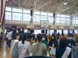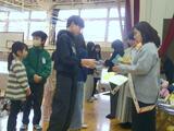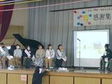 児童代表のお礼の言葉の後は、全学年と6年生の代表児童からお手紙とプレゼントが渡されました。さらに「ありがとうの花」を全校児童で歌いました。ボランティアの代表の皆さんが感動してくださる歌声が体育館に響きました。ボランティアの代表の方からは、「野火止小学校が大好きです」「みんなと会えると元気がもらえます」「皆さんも将来、誰かを支える立場になってくれると嬉しい」とお話がありました。