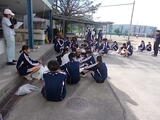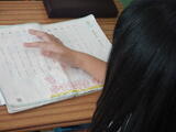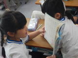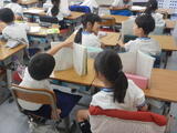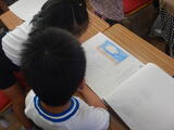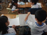 1ー1は国語です。かずとかんじの学習です。一から十までの漢字の読み方をこぶたの詩で学習しています。「十」は何て読む?「とお!」みんなしっかり答えられています。1-2も国語です。うみのかくれんぼの最後の時間です。教科書の学習だけでなく、自分の好きな海の生き物についても調べてきました。今日は友達に調べたことを伝える活動です。「どれにしようかな?」と、ワークシートをめくりながら悩んでいる子。もう自分の調べたことを伝え始めている子。様々です。1-3も国語です。かずとかんじの学習です。音読を隣の児童と聞き合っています。はじめから最後まで読んでいる子たち。1文ずつ交代しながら読んでいる子たち。いろいろな方法で繰り返し声に出して楽しんでいます。