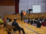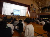 3時間目。体育館では4年生が野火止用水の出前授業を受けています。新座市観光ボランティアガイド協会の皆様による出前授業です。社会の授業で調べている野火止用水。なぜ野火止用水が作られたのかを、江戸が世界的に見ても大都市となっていたことや食糧生産や飲用水の需要が高まり玉川上水が作られたことなどから丁寧に説明していただきました。1日500人で600mも掘り進めたことや、これまで柳瀬川や黒目川の沿岸にしかなかった村が、野火止用水が作られたことによって野火止村、菅沢村、西堀村などができ、新座が発展してきたことなどを聞くことができました。野火止用水沿いに配置された短冊形の農地は、肥料や資源として利用するために人工的に雑木林を備えてきたことなども知ることができました。来週、実際に野火止用水の見学に出かける4年生。現地でのお話も楽しみですね。ボランティアガイド協会の皆様、有り難うございました!