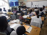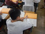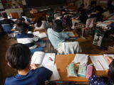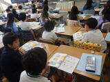 1時間目。3‐1は算数です。球について調べています。球の断面図はどのような形になるのだろう?なかなか想像しにくいですが、デジタル教科書の映像で確認しています。円になることを確認してびっくりです。3-3は外国語活動です。グリーティングカードを贈る活動のために、習った様々な形や色を使っていく学習になります。どんな形や色を使ったのかを説明したり、カードを贈るときに相手に伝えたり、様々な場面で英語を使っていきます。4‐1は国語です。「未来につなぐ工芸品」「工芸品のみりょくを伝えよう」を自由進度学習で学んでいく導入を行っています。中心となる語や文をとらえて要約すること、社会でも学習している工芸品の魅力を自分も「一人の職人」になって伝えてみることに、これから取り組んでいきます。