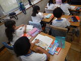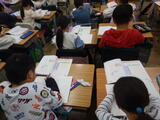 4-2は国語です。「未来につなぐ工芸品」で初め・中・終わりの説明文の構造について確認しています。毎年。繰り返し出てくる説明文。少しずつ違う構造で書かれていますが、今回はどんな構造でしょうか。2-3は算数です。九九の前半の学習がおわろうとしています。まとめの問題に取り組んでいます。書いて解くだけでなく、九九の暗唱も頑張ってほしいです。1-2は国語です。「じどう車くらべ」の書き方を調べています。働く車の「しごと」を紹介し、「そのために」という言葉で「つくり」につなげています。どの段落にも「そのために」という言葉があることに気づいています。