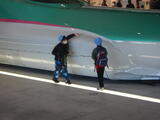 お昼には新幹線ラウンジでお弁当をいただきました。窓から新幹線が眺められる特等席です。「ALFA-X」という珍しい新幹線に歓声が上がります。