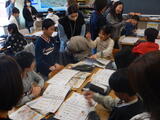 5時間目。3年生と5年生の授業参観が行われました。3-1は外国語活動。形の名前を聞き取り速く取る活動のはずが違う単語もどんどん出てきています。3-2は道徳。「みんなのわき水」という話をもとに、みんなの場所や物を使う時の思いについて考え深めています。3-3は理科。大きい音を出した時と小さい音を出した時の、音を出すものの違いについて実験して確かめています。5-1は体育です。マット運動に取り組んでいます。倒立から前転をする人、後転の練習をしている人。それぞれの目標に向けて練習を進めています。5-2は家庭科です。実際に給食に使われている食材が何のもとになる食べ物なのかを、5大栄養素をもとに「エネルギー」「体」「体の調子を整える」もとになる食べ物に分類しているところです。5-3は外国語です。職業についてカードを選び、グループの中でジェスチャーを使って問題を出しています。これまで学習した職業の名前を使って英語で答えているところです。この後は懇談会となります。たくさんの皆様の御参会、有り難うございます!