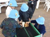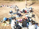 いよいよお昼です。日当たりのよい広場でお弁当をいただきます。保護者の皆様、朝早くからお弁当を準備していただき、有り難うございました!