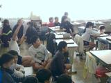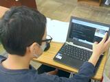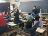 6-1は国語です。名言について調べて収集しています。偉人の名言や詩人が作ったフレーズ、色紙などから情報を集めています。「先生の言葉でもいいよ!言われて心に残ったこともあるよね?」これまでの学校生活の積み重ねも自分にとって大切な財産です。5-3は算数です。割合についての学習をしています。数直線をしっかり書いて、立式、計算。発表の挙手ができている人がたくさんいます。5-1は次の時間の体育の準備中です。跳び箱運動に取り組む第2時です。体育館の中に跳び箱を準備するときの場の設定を見て、自分はどこに行って誰と活動するのかを確認しています。