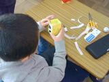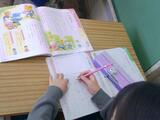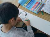 1-2は図工です。「せんのぼうけん」です。カラーペンで線をぐるぐると書いていきます。端まで来て終わりか…と思ったら、もう一枚の紙にさらに続きを書いていきます。お話がどんどん続いていく面白さがあります。1-1は道徳です。意地悪をしている友達を見かけたときの気持ちについて考えています。「いじわるはだめだよっていう」「いじわるするとなかよくなれないとつたえる」など、お互いの気持ちを考えながら言葉を選んでいます。たんぽぽ学級は図工です。節分に備えて豆まきの升を作っています。鬼のパンツをイメージした色紙を貼り合わせて模様を作っています。