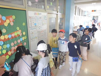4月30日(木)1・2年生 生活科 校内探検 投稿: ルーム管理者 (18:54) 今日は、2年生が企画した1年生の校内探検の日です。 2年生のお兄さん、お姉さんのみなさん、ありがとうございました。説明もとても上手でした。 1年生の皆さんも、探検をがんばりましたね。 -