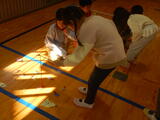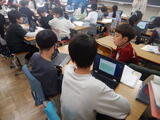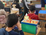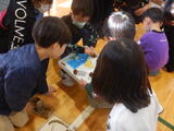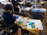 3-2、3は総合的な学習です。「安全」についてアンケートなどを取りながら調べたことをもとに、自分たちが考えたことを発表する練習をしています。「心の安全」について調査したグループは自分たちの気持ちに向き合い友達にどのように接すればよいかを考えています。5‐1は算数です。「ならす」ということについて考えています。グラフを使ってでこぼこを「ならす」ことについて、自分の考えを発表しています。6-2は図工です。いよいよクランクを使った作品が完成!作品票を作成し、これから鑑賞に取り掛かるのでしょう。力作が勢ぞろいです!