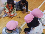 3時間目。今日は「秋のおもちゃランド」を1年生が開催しています。体育館には3つの幼稚園・保育園から年長さんが集まってくれました。ドングリや松ぼっくりなど秋を感じさせるものを使ったおもちゃを1年生が作りました。それを使って年長さんに遊んでもらう企画です。1年生も半分ずつ遊んでいます。お店番の児童はお客さんを呼び込んだり、遊び方を伝えたり。うまくいった年長さんに「上手!」と笑顔で拍手をしていたり。1年生らしくしっかりおもてなしができた1時間でした。十文字幼稚園、すこやか保育園、野火止保育園の皆さん、有り難うございました!