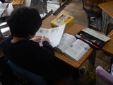 1時間目。3-1は国語です。ことわざ・故事成語について学習しています。国語辞典を使って自分で意味を調べています。3-3は図工です。「布でえがくと」という題材です。いろいろな布を持ち寄って、柄を活かしたりはさみで切って形を作ったり。重ねて貼ったり絵の具で描き加えたりしながら作品作りが進んでいます。5‐1は算数です。平均を求める計算です。5で割るのか6で割るのか。ノートに書きこんだ考えを交流しながら友達の考えを聞いています。