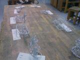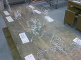 2時間目の1-2と3時間目の1-3は読み聞かせです。日本の神話シリーズ第3弾のスサノオとヤマタノオロチとの戦いの絵本です。お酒を飲ませるときに使う「甕」とはどんなものなのか。図書整理員さんが小さい甕を見せながら説明してくれています。5-1は算数です。正多角形と円の学習がまとめに入ってきました。様々な要素が入り込んで、円周率も出てきており問題が難しくなってきていますが、自分で、友達と、頑張って考えています。図工室では授業参観懇談会に備えて針金で作った作品を展示しています。広がりや高さ、曲線や動きなど、それぞれの工夫が洸作品がずらっと並んでいます。