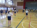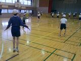 体育館では心肺蘇生法の練習をしています。大人が使うダミーではないシンプルな心臓の模型でしたが、しっかり音が鳴るように押し続けると、「はあ、はあ!」と息が上がってしまいます。「AEDをちゃんと使った方がいいよ!」と言いながら、AEDのパットの貼り方も教えてもらっています。